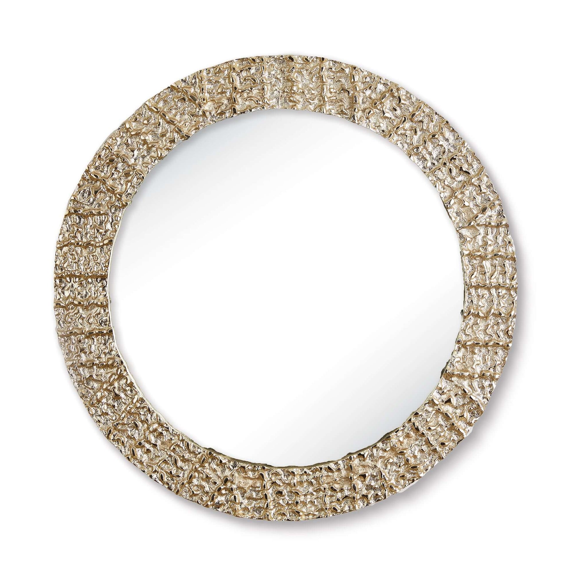 Vintage Champagne Round Wall Mirror with Textured Frame