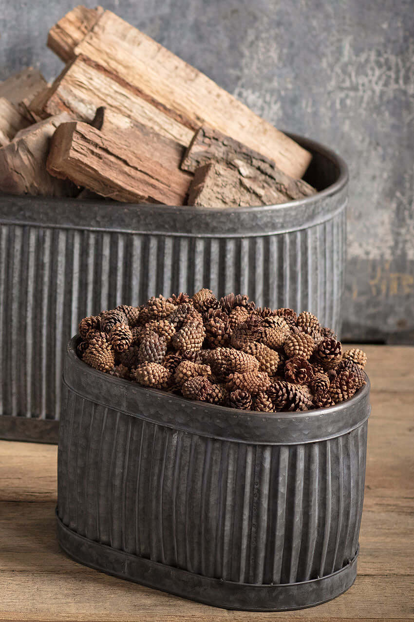Introducing our Vintage Dolly Tubs, a set of rustic, functional decor pieces that capture the charm and durability of antique wash tubs from the early 20th century. Crafted with classic galvanized metal and featuring corrugated sides, these tubs bring a vintage-inspired touch to any home. Perfect for those who appreciate farmhouse or industrial decor, these dolly tubs are versatile enough to complement a variety of styles, adding a raw, textured appeal to your space. And for Winter, these tubs serve as excellent antique firewood holders.