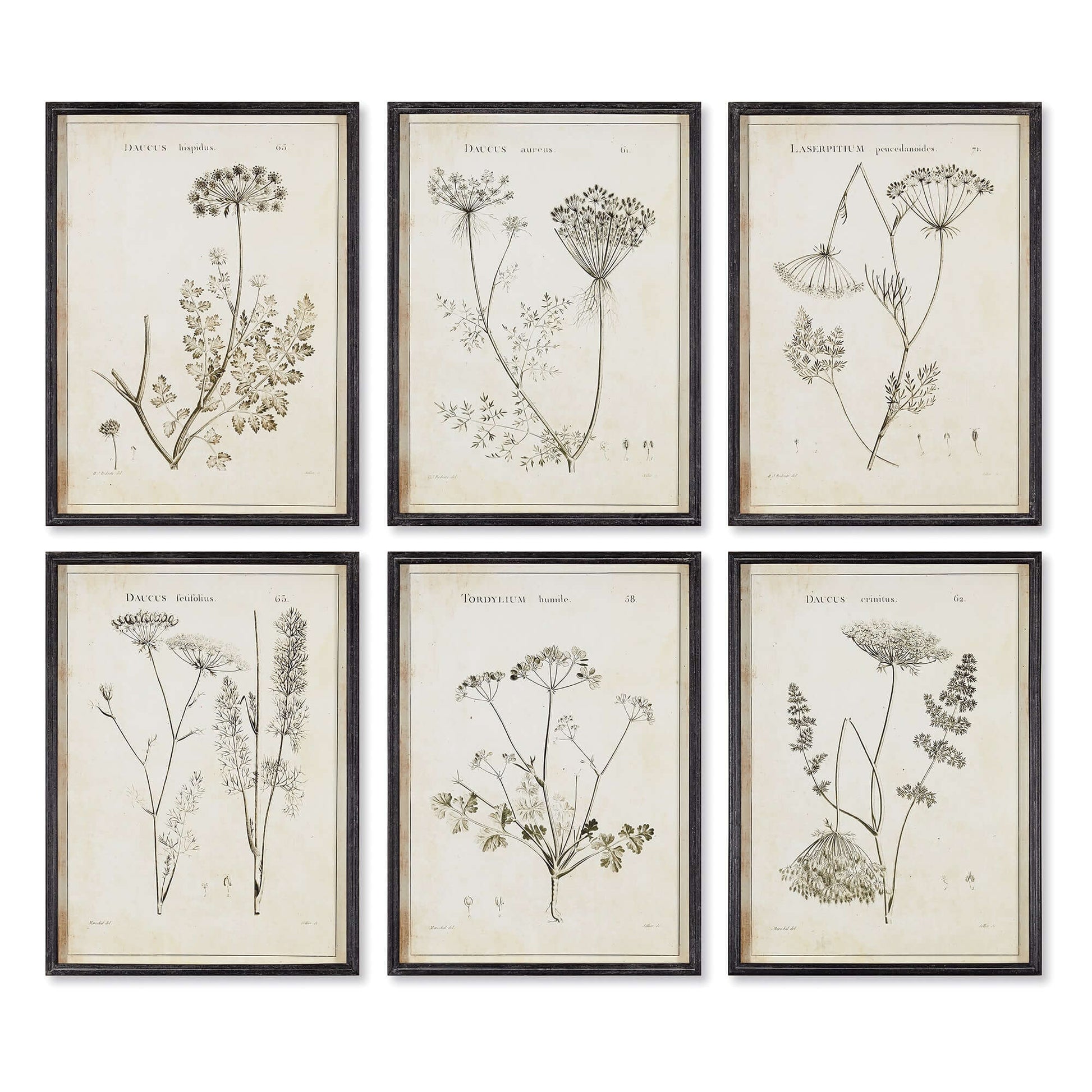 Vintage Monochromatic Botanical Wildflower Wall Art (Set of 6)