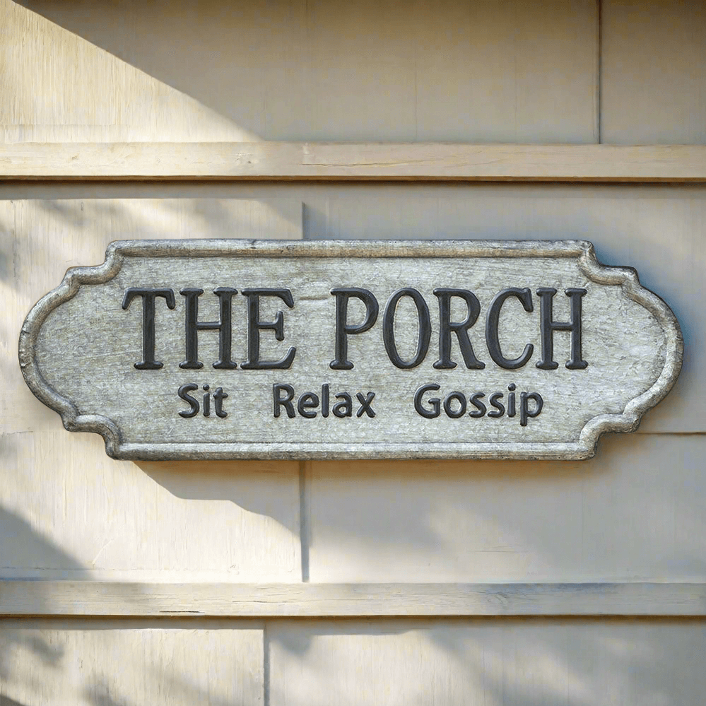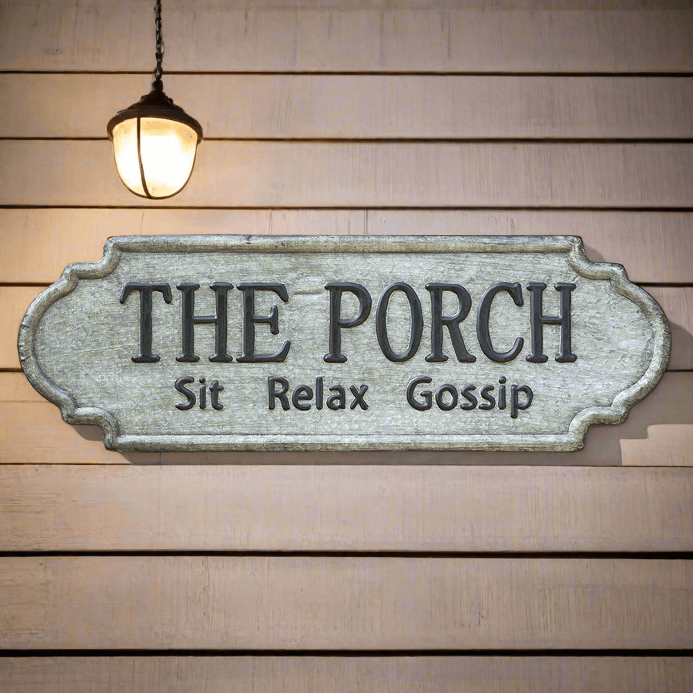 Perfect for living rooms, entryways, or porches, this versatile sign seamlessly integrates into various interior styles, from farmhouse to shabby chic to Victorian. Embrace the allure of vintage decor and elevate your home's style with the Vintage-Inspired Porch Metal Wall Sign. Its timeless charm and elegant design make it a must-have addition to your home, effortlessly adding character and beauty to your porch.