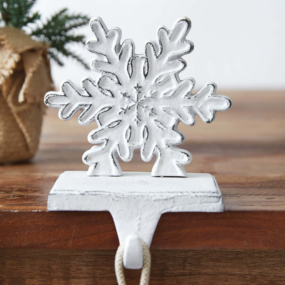 White Rustic Snowflake Stocking Holder in Cast Iron