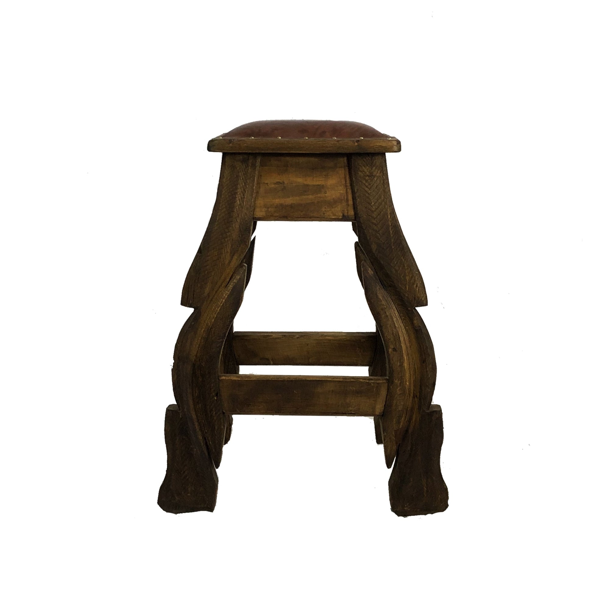 The Yugo Bar Stool stands out with its distinctive Yugo carving on the legs, adding a touch of sophisticated craftsmanship to its design. The leather seat is not only stylish but also durable, making it ideal for everyday use in high-traffic areas like kitchens and home bars.