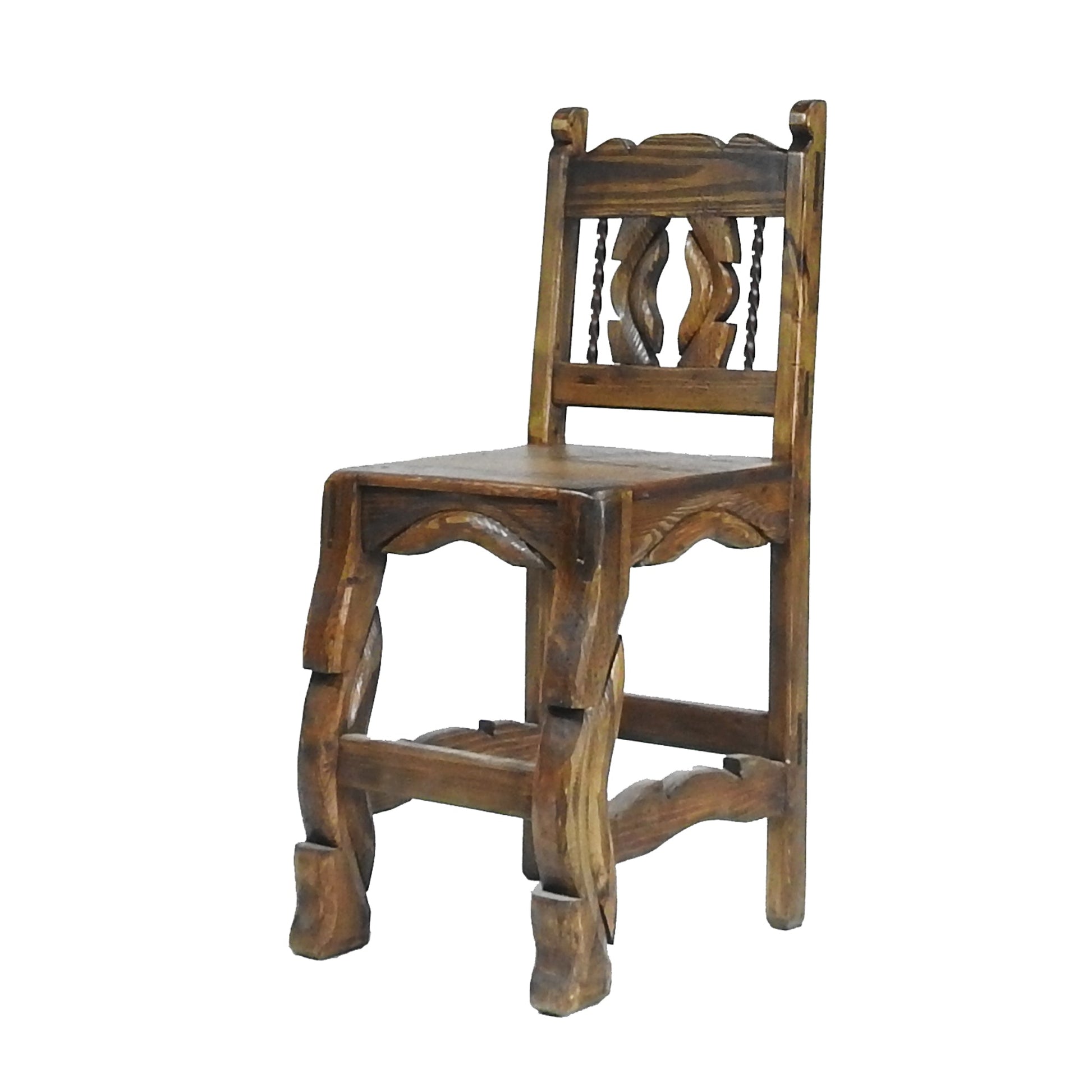 With its 24-inch height, this barstool is ideal for counter-height bars or kitchen islands, offering both style and functionality. Its sturdy construction ensures durability and stability, while the detailed carvings on the back enhance its overall visual appeal.